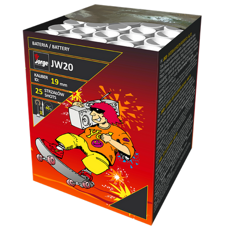 - Średnia bateria 25 strzałów. Kaliber 19mm. Posiada certyfikat CE kl.F2
